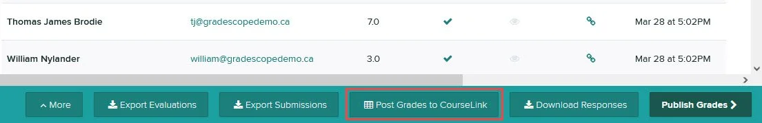 - From the bottom menu, press the Post Grades to CourseLink button.