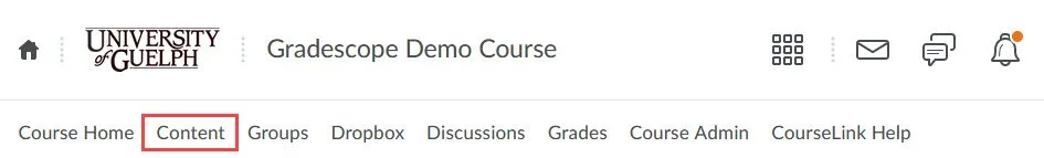 - Select Content from the navigation bar of your CourseLink course site.