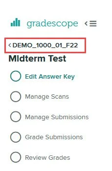 - The assignment's page will open in a new tab in Gradescope. From here, return to the Gradescope course's main page by clicking the course code near the top of the left menu.